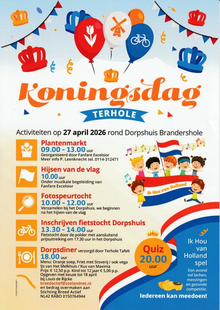 Op maandag 27 april staan er weer activiteiten gepland op Terhole rond de viering van Koningsdag.